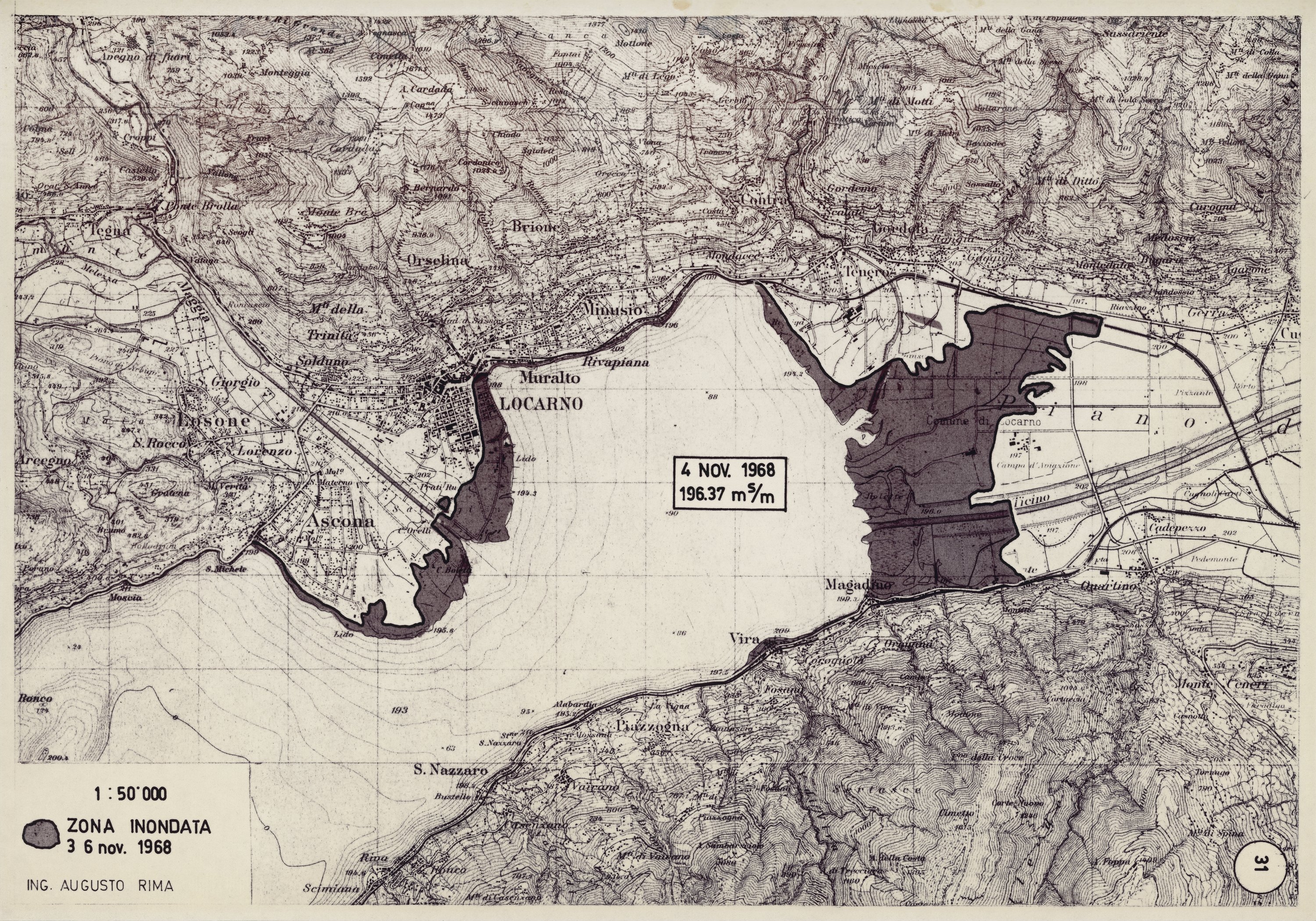 - Lago Maggiore, mappa della zona inondata il 3-6 novembre 1968
