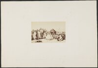 Uomini riuniti fuori da una capanna, disegno Fotografia di uomini riuniti fuori da una capanna, disegno