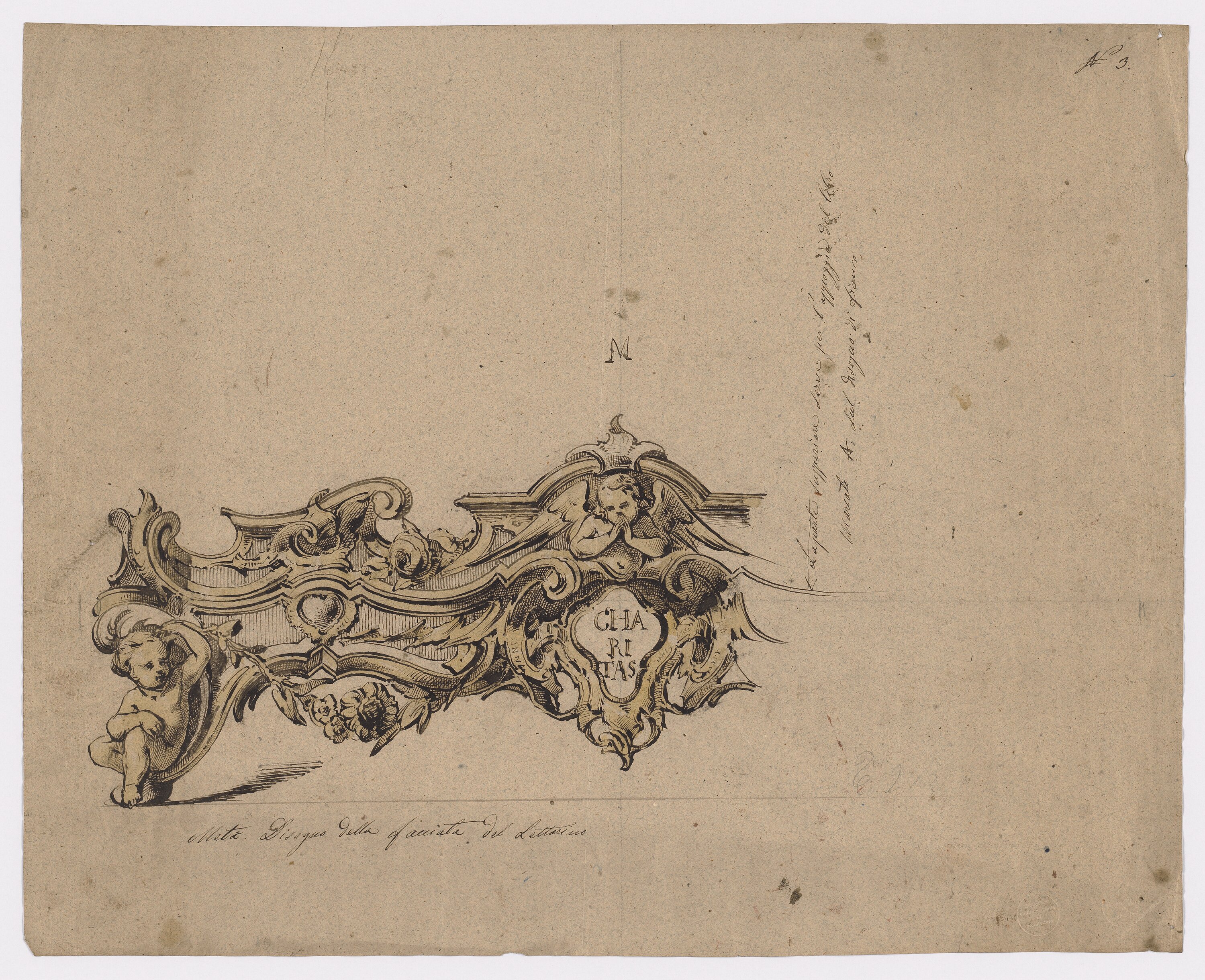 - Base del leggio vista di fronte. Spiegazione a biro: La parte superiore serve per l'appoggio del libro marcato A sul disegno di fianco.