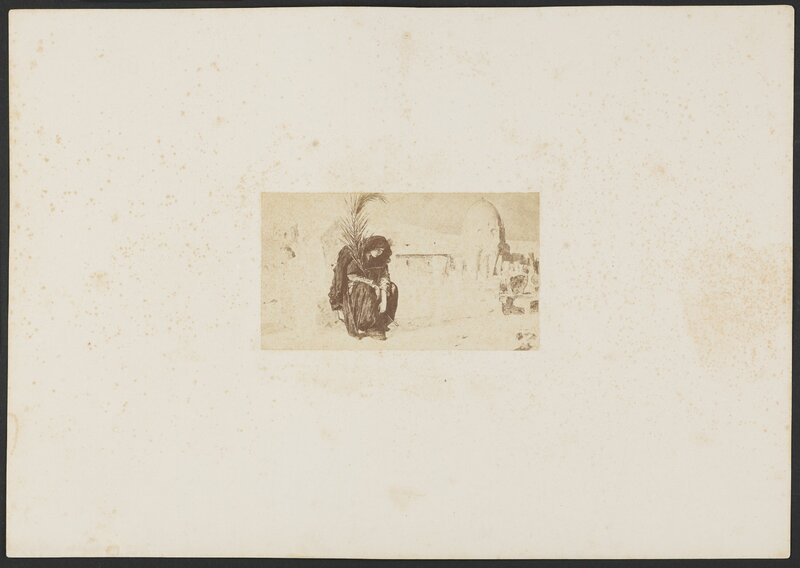 Lo scatto riprende un disegno di Leopold Carl Müller, mostra una donna vestita di nero, con una foglia di palma in mano, seduta in un cimitero