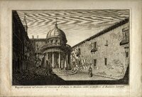 Tempietto esistente nel chiostro del Convento di S. Pietro in Montorio, celebre architettura di Bramante Lazzari Veduta del Tempietto del Bramante. Opera apparsa in "Delle magnificenze di Roma antica e moderna libro primo [-decimo] dedicate alla sacra real maestà ... da Giuseppe Vasi da Corleone pittore architetto e pastore arcade". In Roma : nella stamperia del Chracas presso S. Marco al Corso, 1747-1761