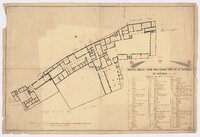 Pianta della casa del Luogo Pio di S.ta Valeria in Milano, nel 1786 Pianta dell'edificio con scala e cartiglio con spiegazione delle singole parti della casa